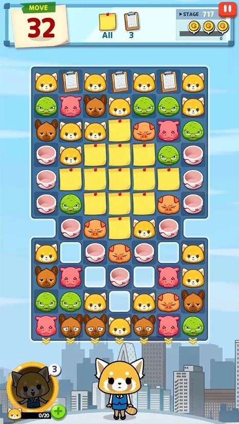 어그레츠코의 게임의 방식은 소위 말하는 팡류 게임으로 3가지 블록을 조합하는 애니팡 시리즈와 유사합니다. 기본 스토리는 레츠코가 직장 상사로부터 사무실의 인테리어를 맡게 되면서 시작됩니다. 퍼즐을 풀고 얻을 수 있는 스타 포인트로 사무실의 소품을 획득하여 사무실을 꾸미는 시스템으로 애니팡과 차별화된 요소입니다. 상사나 동료들이 보스로 등장하기도 합니다.
