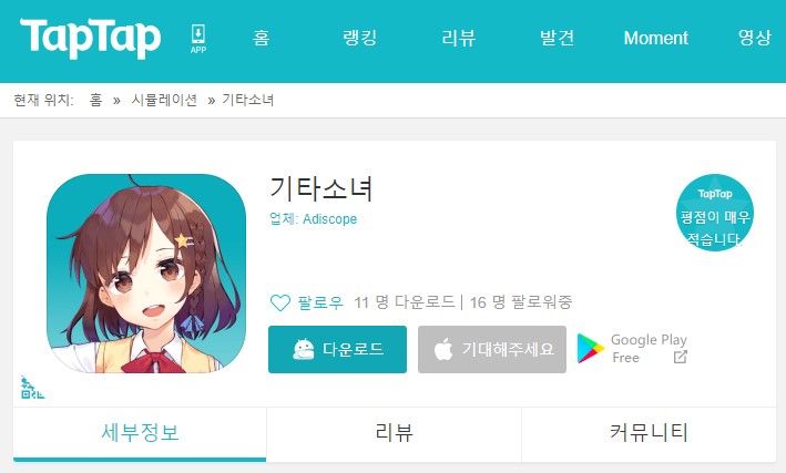 혹시 'TapTap'에서 기타 소녀를 플레이해보신 분이 계시다면 댓글로 짧은 정보라도 부탁드립니다. 감사합니다.