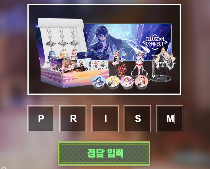 지난 글에서 암호에 대한 힌트를 제공하였습니다. 정답을 찾는 과정에서 여러 일루전 커넥트 캐릭터를 볼 수 있으니 시간 되시는 분은 찾아보시길 바랍니다. 암호인 PRISM을 입력하면 여섯 번째 프리즘을 찾게 됩니다.