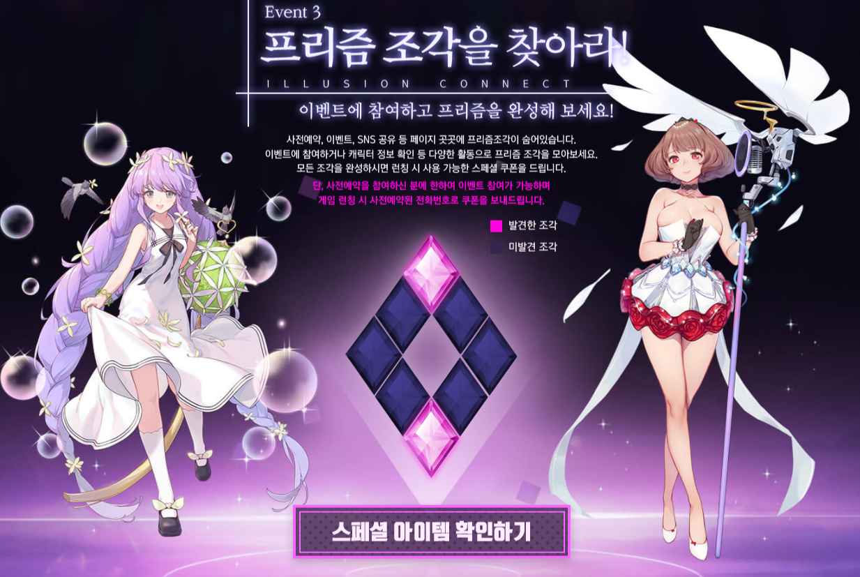 수집형 RPG 게임 일루전 커넥트가 출시를 앞두고 있습니다. 공식 홈페이지와 카페에서 사전 예약에 대한 혜택과 각종 이벤트로 유저들을 모으고 있는데요, 지난 사전예약 정보에 이어서 일루전 커넥트 프리즘 모으는 방법과 암호에 대해서 포스팅해보겠습니다.