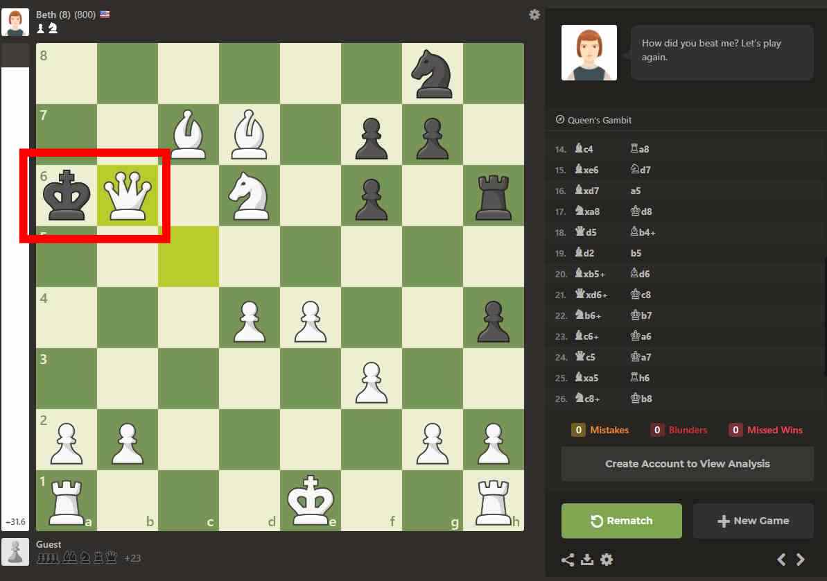 해당 사이트는 퀸스 갬빗의 베스뿐만 아니라 다양한 실력을 가진 가상의 선수들과의 대전도 가능합니다. 체스에 관한 기사, 레슨, 영상, 대전 등 여러 가지 볼거리를 제공하고 있으니 체스에 관심 있으신 분들은 즐겨보시길 바랍니다.