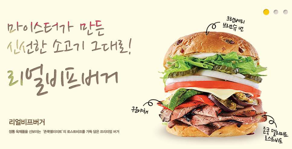 어쨋던 한입 베어 물면 첫 느낌은 '차갑다'입니다. 추운 날씨 때문일까요? 포장 후 겨우 10분 동안 차로 이동했는데 햄버거가 차갑습니다. 홈페이지를 찾아보니 리얼비프버거는 로스트비프, 구운 야채가 차갑게 제공된다고 합니다. 로스트비프야 존쿡 델리미트에서 제공받았을 테고, 구운 야채는 왜 차갑게 식힌 건지 모르겠지만 식어빠진 음식을 먹는 느낌을 지울 수가 없습니다. 편의점에서 판매하는 냉장실의 샌드위치보다 못한 느낌입니다. 서브웨이의 신선한 야채가 그립네요.